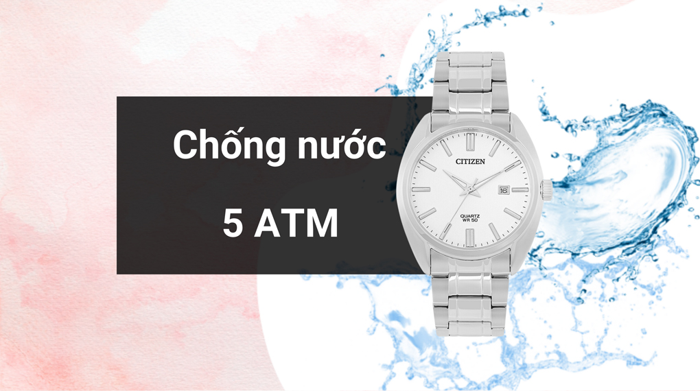 • Hệ số chống nước của sản phẩm là 5 ATM, cho phép bạn sử dụng đồng hồ nam hàng ngày, bao gồm rửa tay, đi mưa và tắm. Tuy nhiên, lưu ý không đeo đồng hồ khi bơi.