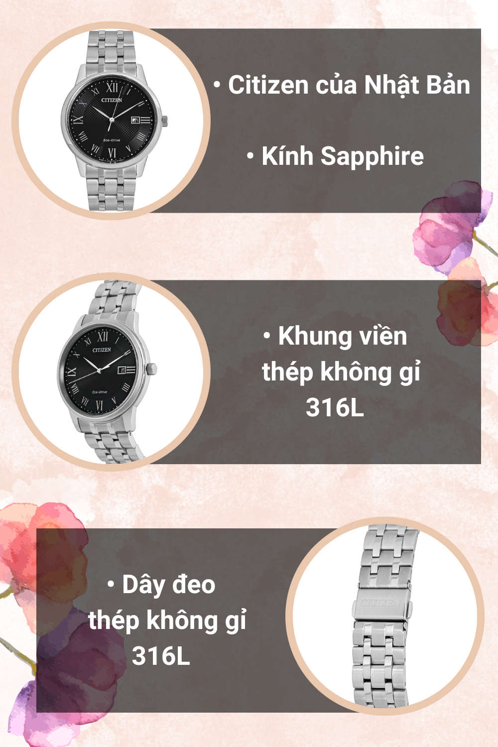 • Sản phẩm với thiết kế vô cùng tinh tế và thanh lịch, nổi bật với mặt đen sang trọng. Mẫu đồng hồ đến từ thương hiệu Citizen - một trong những thương hiệu nổi tiếng và uy tín đến từ Nhật Bản.