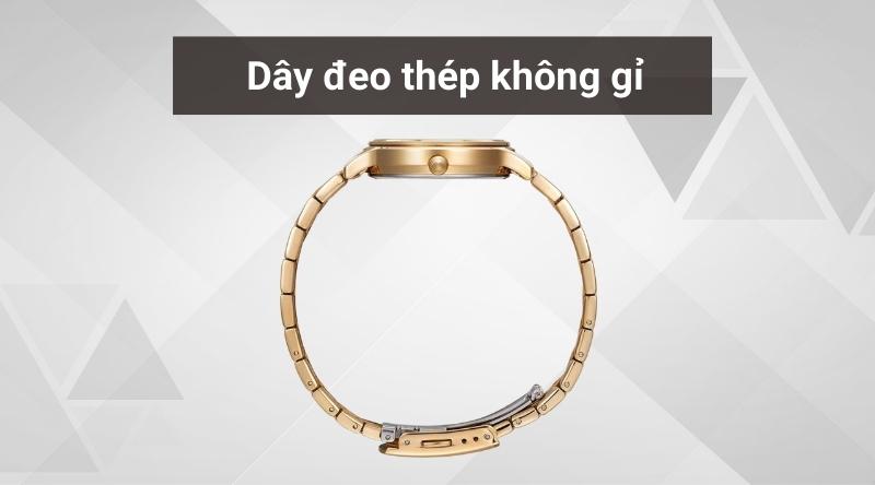 - Được trang bị khung viền và dây đeo đều làm từ thép không gỉ sang trọng, bảo vệ đồng hồ luôn sáng bóng, tuổi thọ cao, dễ dàng lau chùi
