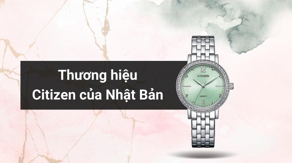 • Đồng hồ Citizen 31 mm Nữ EL3100-55X mang thương hiệu Citizen danh tiếng của Nhật Bản. Với thiết kế đẹp và tinh tế, sản phẩm này đã chinh phục trái tim của rất nhiều người yêu đồng hồ trên toàn cầu.