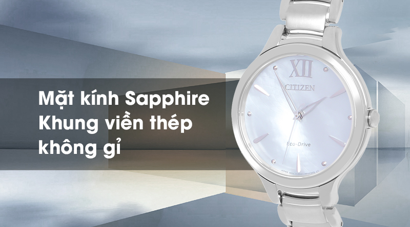 - Mặt kính đồng hồ Citizen nữ trong suốt, có độ cứng cao, hạn chế trầy xước, an toàn với va đập.