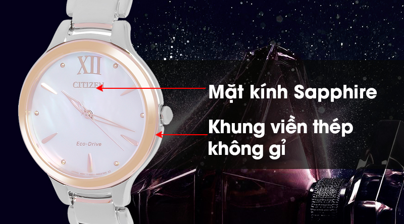 - Mặt kính đồng hồ Citizen nữ trong suốt, độ cứng cao, chống trầy xước tốt.