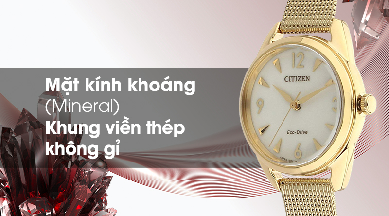 - Mặt kính chiếc đồng hồ Citizen nữ có độ cứng và độ trong suốt cao, dễ dàng đánh bóng lại như mới khi bị trầy xước nhẹ.