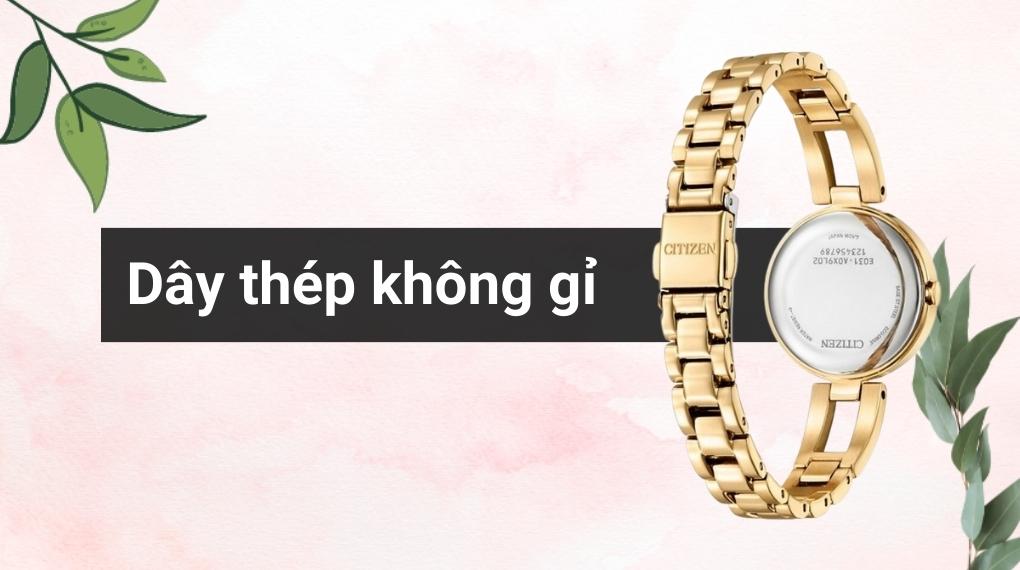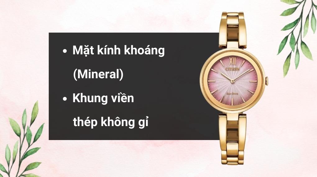 • Khung viền và dây đeo của đồng hồ nữ được chế tạo từ thép không gỉ, kết hợp giữa sự sang trọng và độ bền, đồng thời chống ăn mòn do tác động của môi trường.