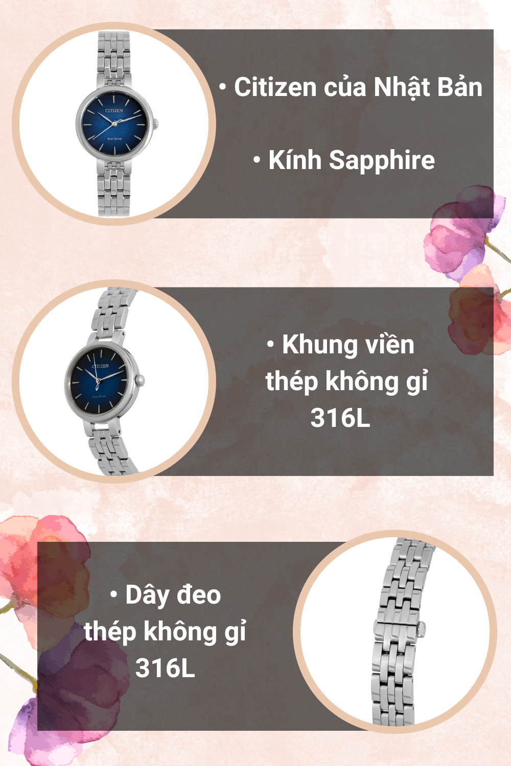 - Với thiết kế thời trang, sang trọng, chi tiết máy hoàn hảo, độ chính xác cao, đồng hồ Citizen luôn đi đầu trong các đột phá về công nghệ và giá cả.