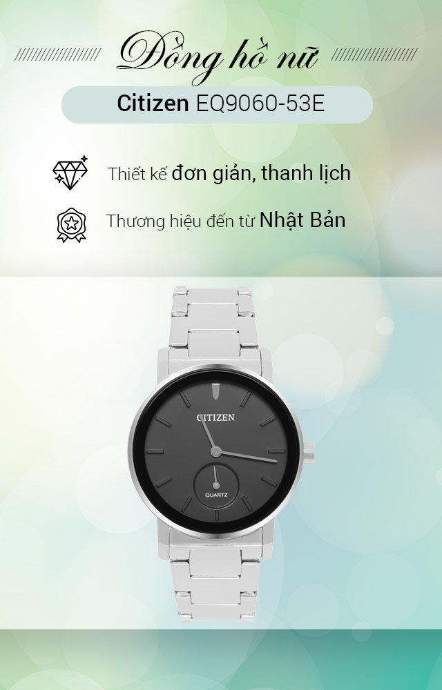 Đến từ thương hiệu đồng hồ Citizen của Nhật Bản, đồng hồ nữ Citizen EQ9060-53E mang nhiều ưu điểm của một hãng đồng hồ lớn