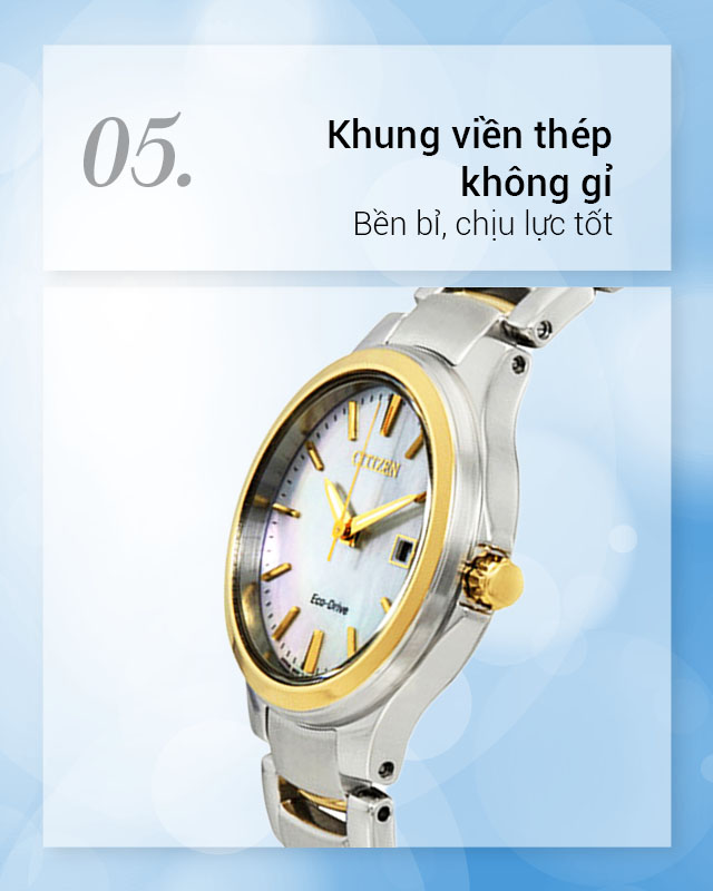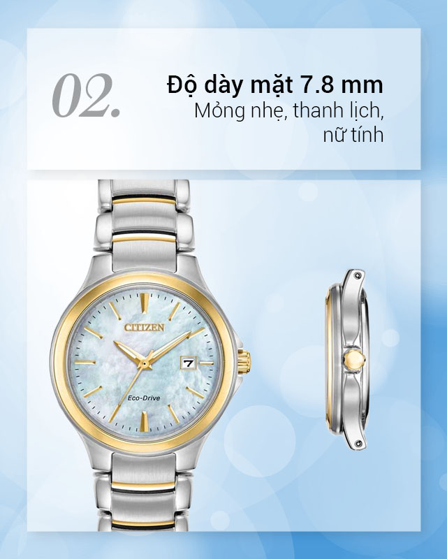 Thiết kế nhẹ nhàng, trang nhã, mẫu đồng hồ Citizen Eco-Drive này phù hợp với các cô nàng thanh lịch, sành điệu
