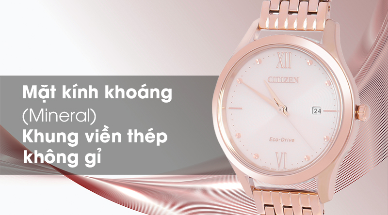 - Khung mẫu đồng hồ Citizen Eco-Drive này bền bỉ, chống ăn mòn, chống oxi hóa, bảo vệ các chi tiết máy bên trong.
