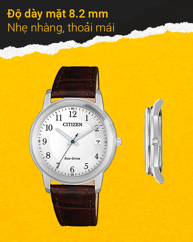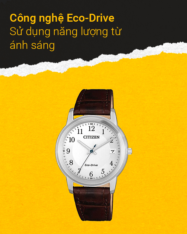 Chiếc đồng hồ Citizen được trang bị công nghệ Eco-Drive giúp hấp thụ ánh sáng từ nhiều nguồn khác nhau (mặt trời, đèn,...) để chuyển hóa thành điện năng cho đồng hồ hoạt động.