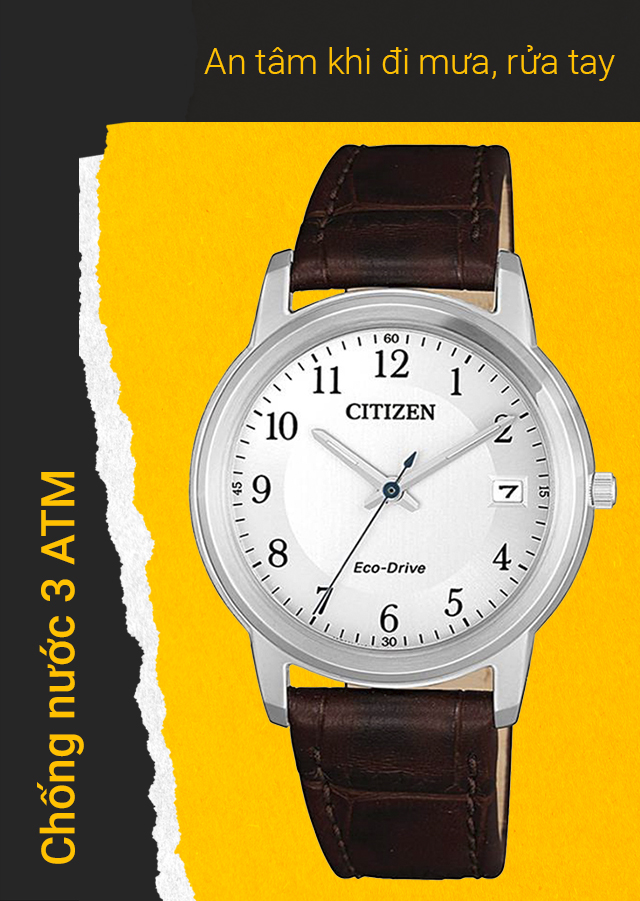 Hệ số chống nước 3 ATM, không cần tháo đồng hồ ngay cả khi đi mưa và rửa tay. Không nên mang đồng hồ khi tắm hoặc bơi lội.