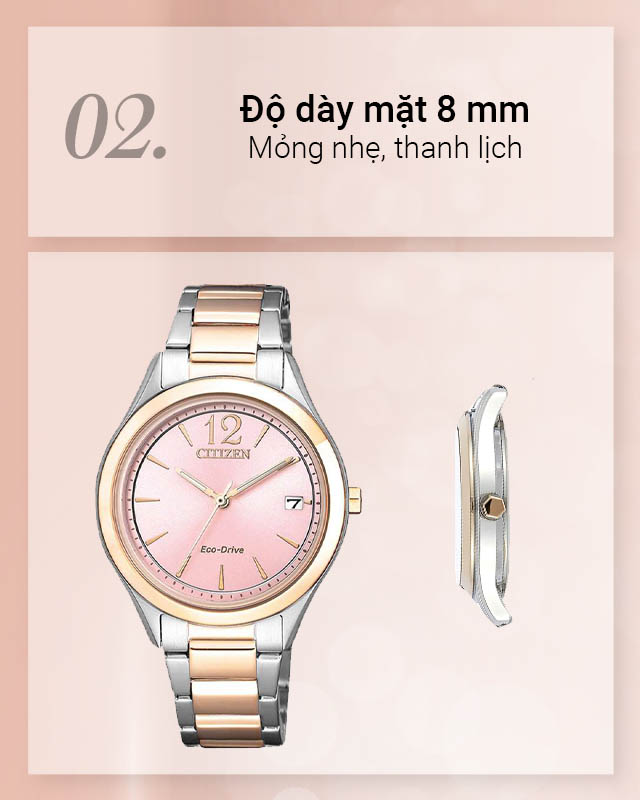 Đồng hồ Citizen nữ trang bị tiện ích lịch ngày, giúp bạn quản lí thời gian tốt hơn.