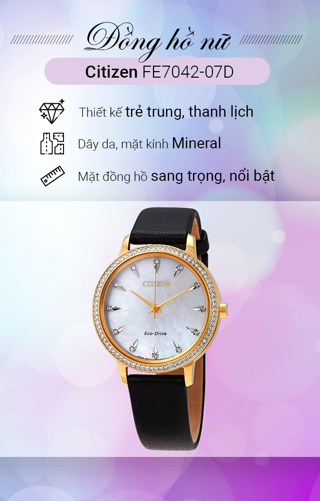 Đồng hồ Citizen FE7042-07D là chiếc đồng hồ nữ mang thương hiệu Citizen uy tín và chất lượng của Nhật Bản.