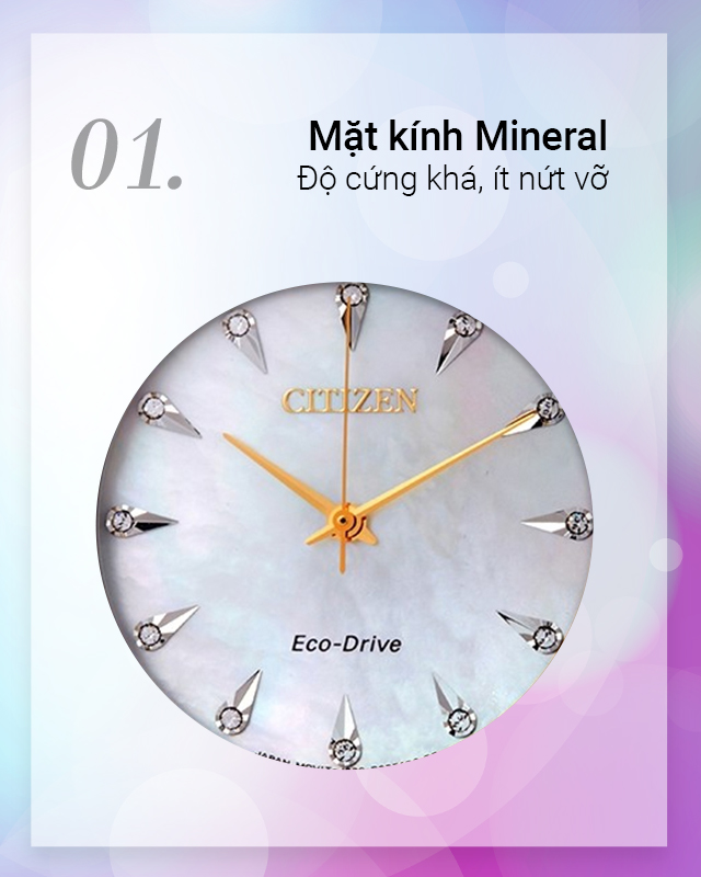 Đồng hồ Nữ Citizen FE7042-07D có mặt kính khoáng ít nứt vỡ