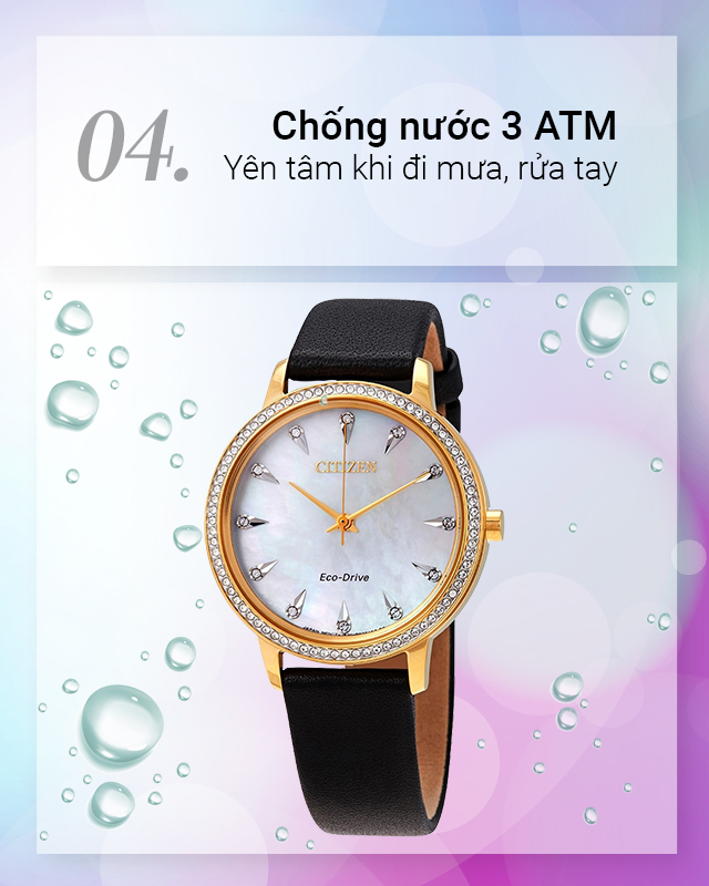 Đồng hồ Nữ Citizen FE7042-07D có hệ số chống nước 3 ATM