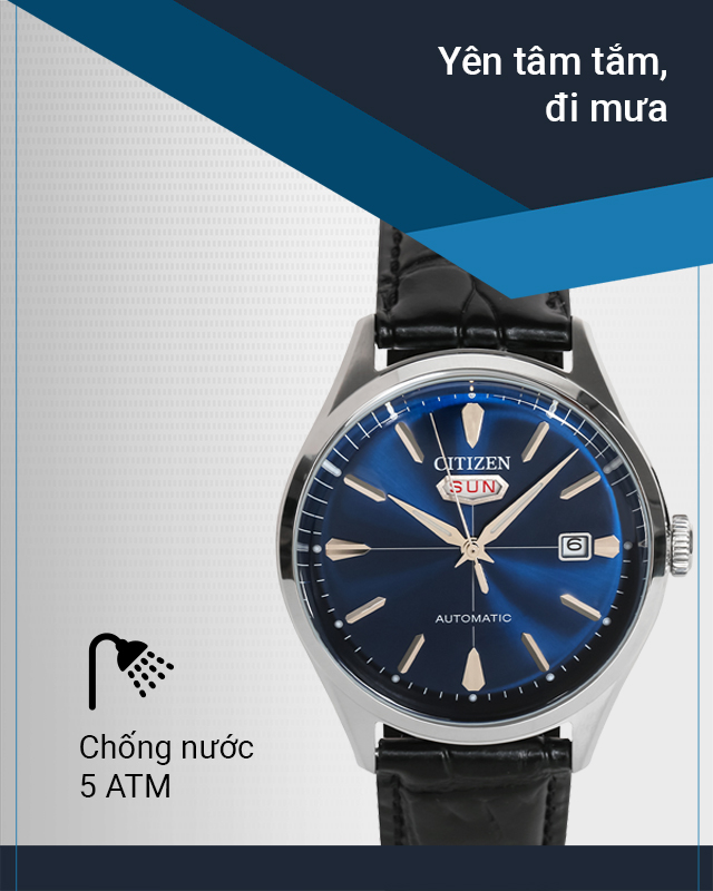 - Người dùng yên tâm đeo đồng hồ khi tắm rửa, đi mưa, rửa tay nhờ hệ số chống nước 5 ATM, không nên đeo đồng hồ khi đi bơi hay lặn