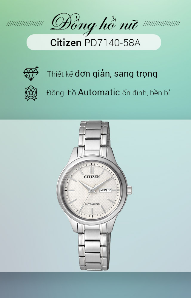 Đồng hồ CITIZEN Mechanical 29 mm Nữ PD7140-58A là chiếc đồng hồ thời trang do hãng đồng hồ Citizen nổi tiếng đến từ Nhật Bản.
