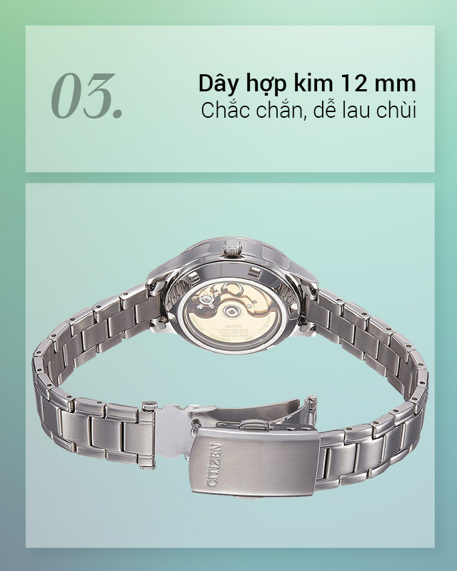 Đồng hồ cơ tự động (máy Automatic), không cần phải lên dây cót thường xuyên, không cần dùng pin, và có tuổi thọ cao