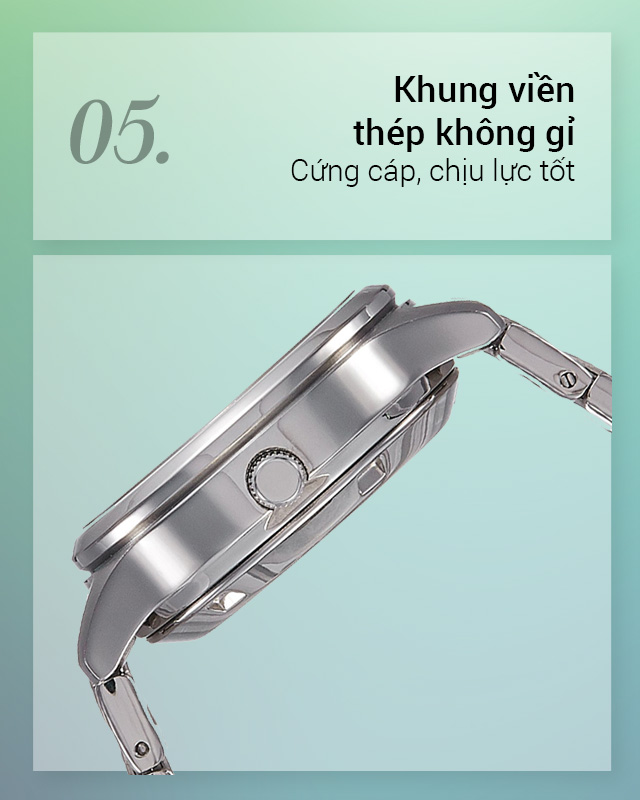 - Khung viền chiếc đồng hồ Citizen nữ này có khả năng chịu va đập tốt, chống ăn mòn, chống oxi hóa hiệu quả.