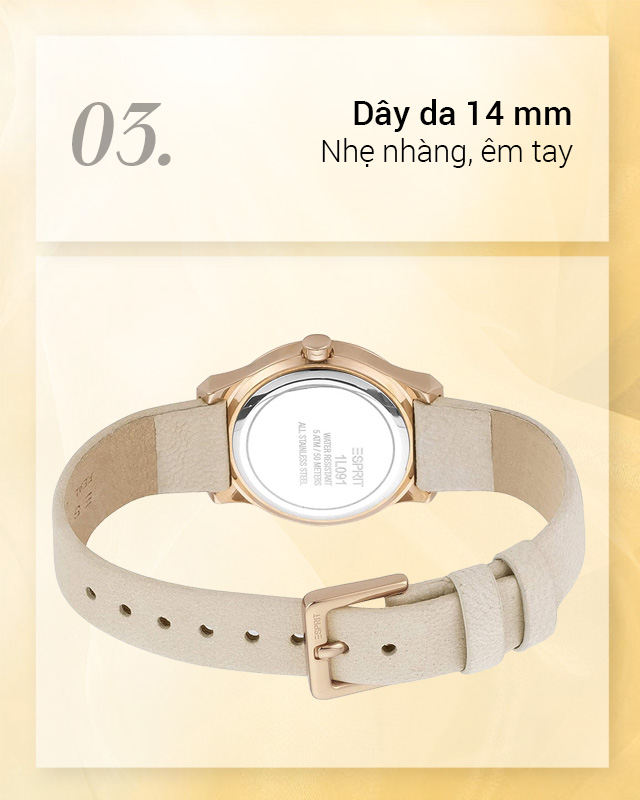 - Mang trong mình thiết kế sang trọng và tinh tế đặc trưng của hãng đồng hồ Esprit - Mỹ