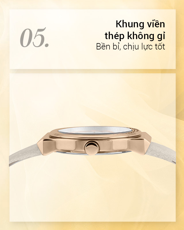 - Phần mặt đồng hồ nữ sở hữu đường kính 28 mm và độ rộng dây 14 mm