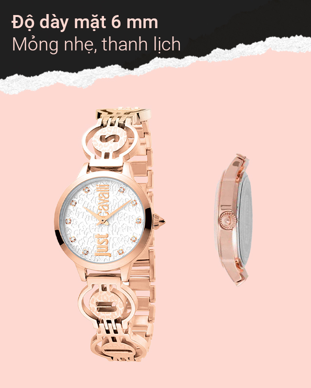 - Chiếc đồng hồ nhà Just Cavalli này có đường kính mặt 28 mm, độ rộng dây 12 mm