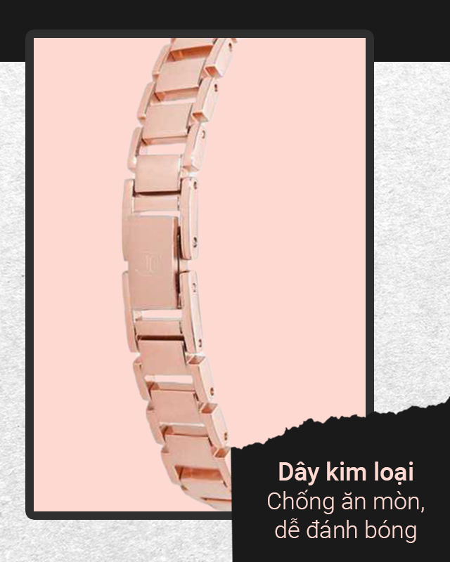 - Dây đeo và khung viền kim loại bền chắc, chống ăn mòn, bảo vệ an toàn phần lõi bên trong, cho cảm giác mát tay khi mang