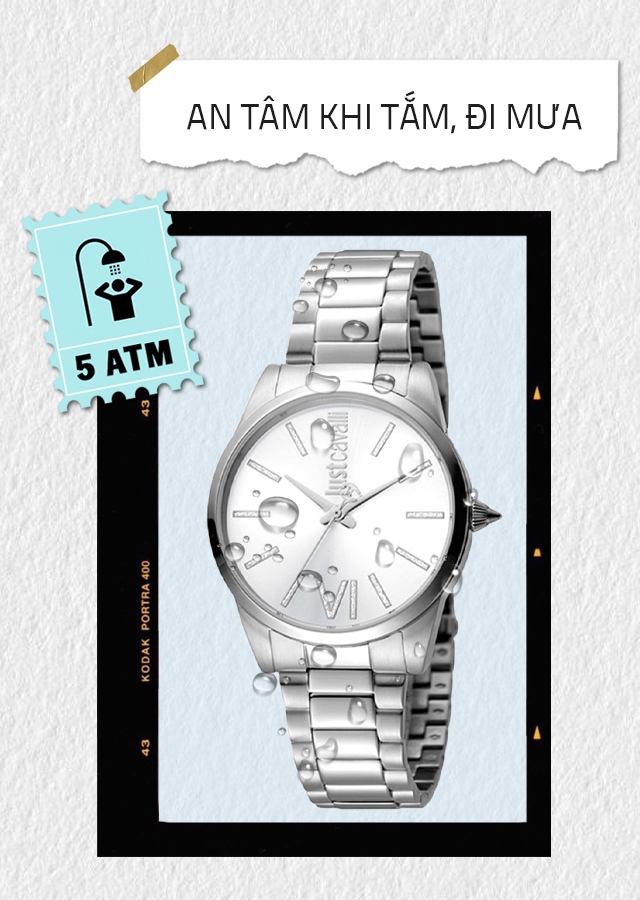 - Yên tâm đeo đồng hồ này khi tắm, đi mưa với chỉ số chống nước 5 ATM, tuy nhiên không nên mang khi bơi, lặn