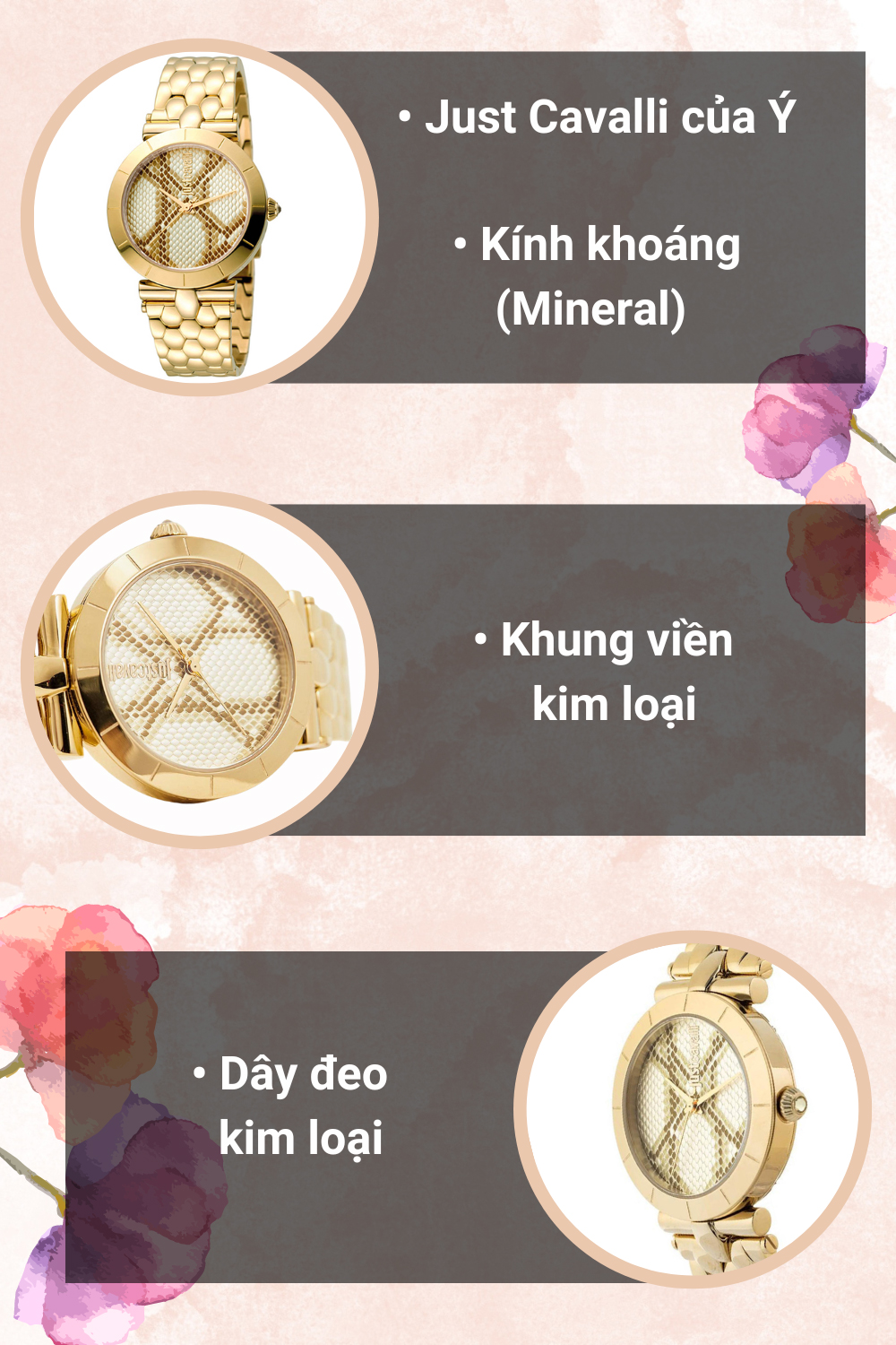 - Thiết kế độc đáo, màu vàng sang trọng đến từ thương hiệu đồng hồ Just Cavalli nổi tiếng và uy tín của Ý