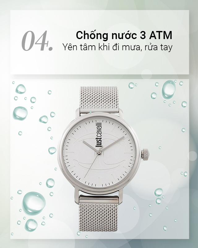 - Hệ số chống nước của mẫu đồng hồ nữ là 3 ATM cho phép mang theo dưới trời mưa nhỏ và rửa tay nhưng tuyệt đối không sử dụng khi đi tắm hay bơi, lặn