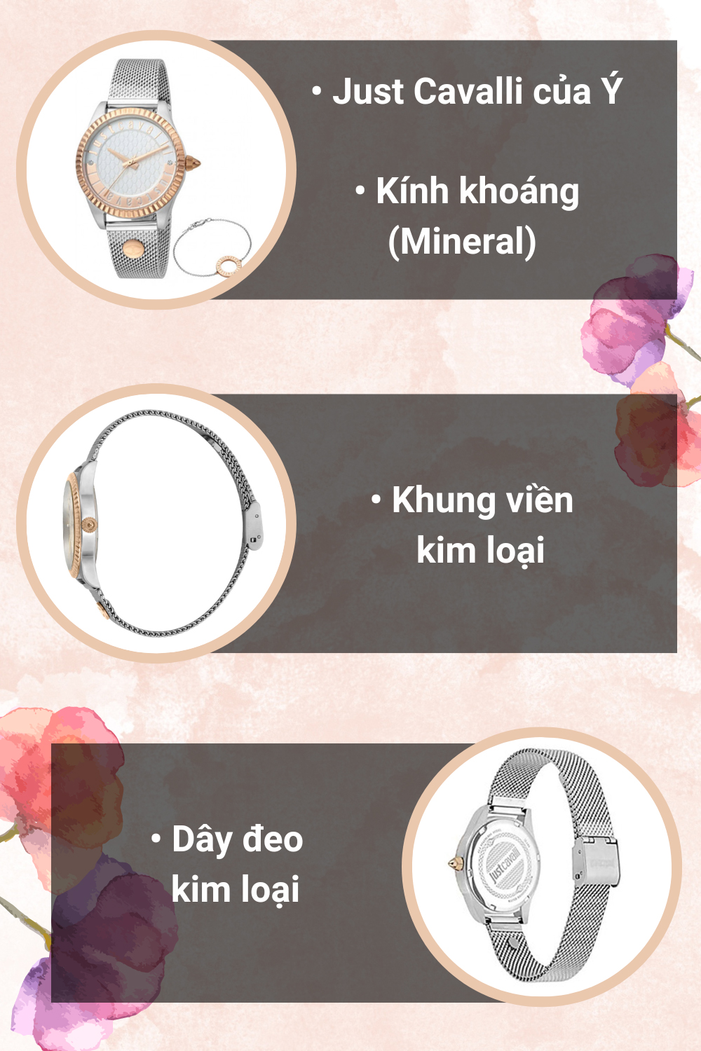 - Phụ kiện thời trang xinh xắn cho những cô nàng nữ tính, sản phẩm đến từ thương hiệu đồng hồ Just Cavalli của Ý, sản phẩm được bán kèm lắc tay