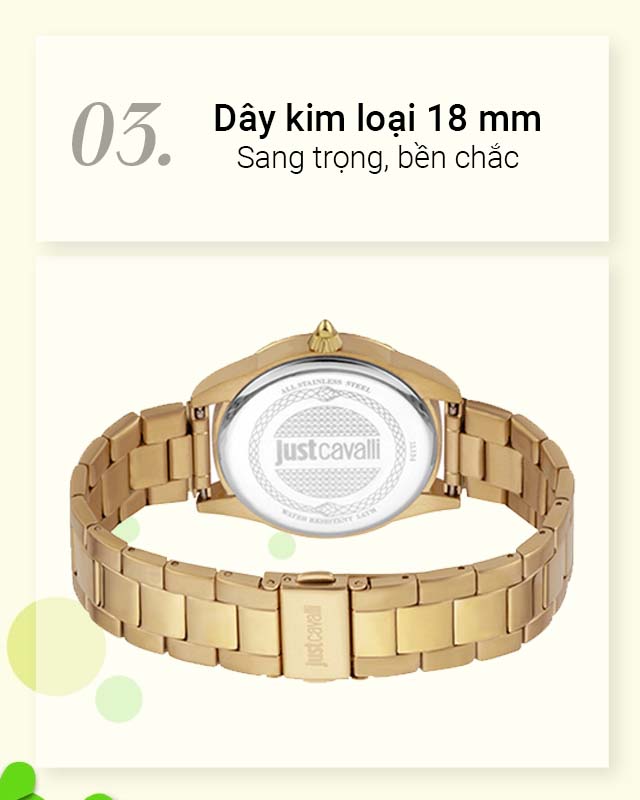 - Vẻ đẹp đến từ nét quý phái, sang trọng thuộc hãng đồng hồ Just Cavalli chất lượng của Ý