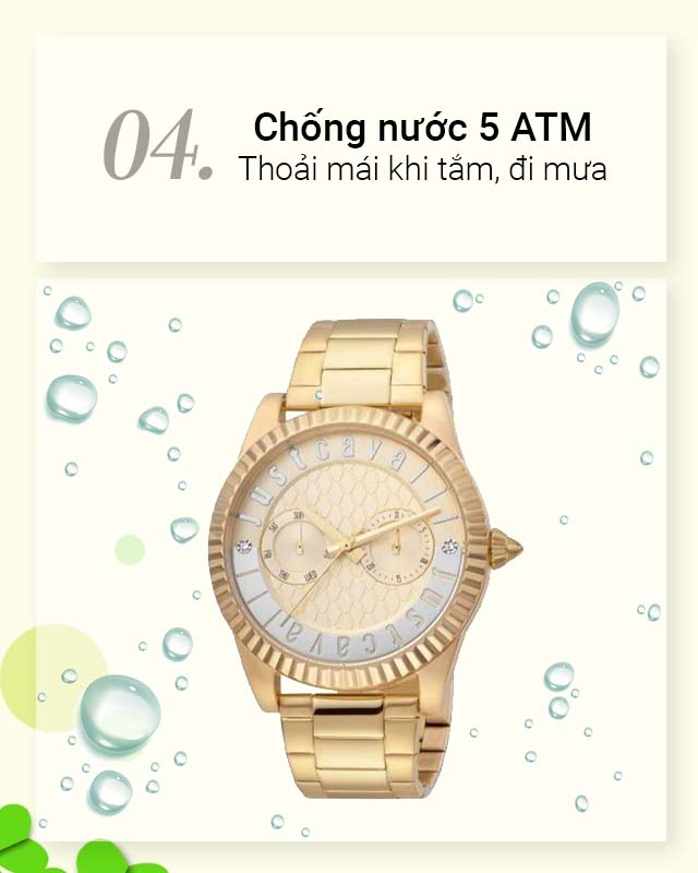 - Thoải mái sử dụng đồng hồ nữ khi đi tắm, đi mưa và rửa tay với hệ số chống nước là 5 ATM nhưng không nên mang theo khi xuống nước ở độ sâu như bơi và lặn