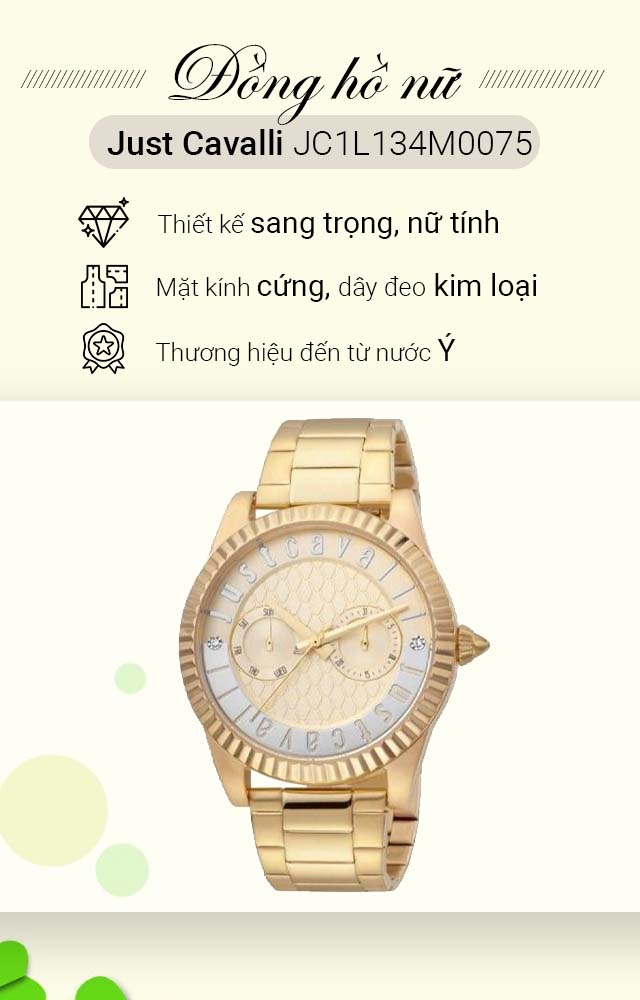 - Đồng hồ Just Cavalli là dòng sản phẩm phổ biến hơn với giá cả phải chăng, hướng đến đối tượng khách hàng có mức thu nhập tầm trung. Được thiết kế tỉ mỉ, mang nhiều phong cách khác nhau như: nữ tính, mềm mại, ngọt ngào, trẻ trung,... nâng tầm giá trị, định hình phong cách cho người đeo.