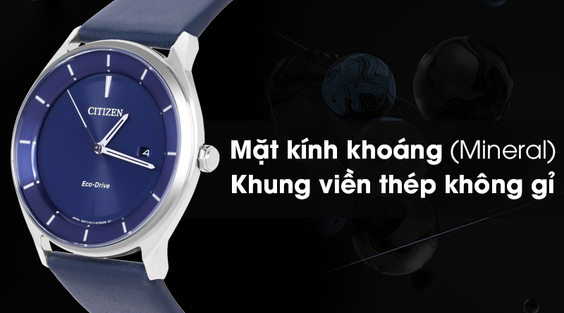 - Mặt kính đồng hồ Citizen nam có độ cứng khá, độ trong suốt cao, chịu lực tốt.