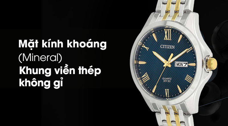 - Chiếc đồng hồ Citizen nam này có mặt kính trong suốt, chịu lực tốt, dễ dàng đánh bóng, làm mới khi bị trầy xước nhẹ.