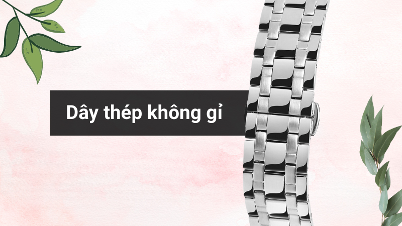 - Khung viền và dây đeo đều làm từ thép không gỉ bền chắc, chịu lực tốt, dễ lau chùi khi bám bẩn.
