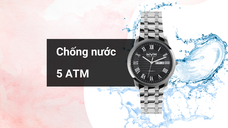 - Đồng hồ được đảm bảo an toàn với độ chống nước 5 ATM, bạn thoải mái đeo khi tắm, rửa tay hay đi mưa, không mang khi bơi, lặn.