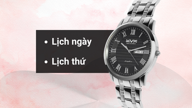 - Chiếc đồng hồ nam này có lịch ngày, lịch thứ vô cùng thuận tiện.