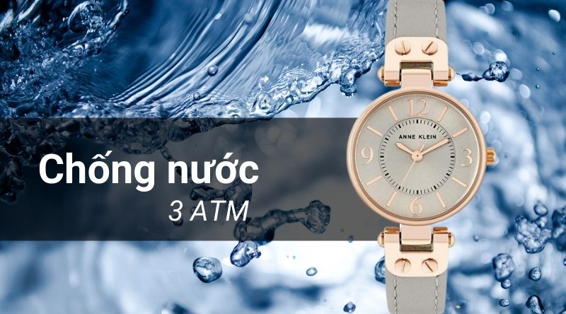 - Người dùng không phải lo sợ nước sẽ gây hư tổn đến đồng hồ khi rửa tay hoặc đi mưa, bởi vì đồng hồ Anne Klein có hệ số chống nước lên đến 3 ATM. Lưu ý: không mang khi đi tắm, bơi lội.