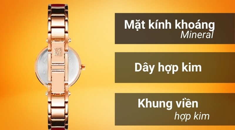 - Hợp kim là chất liệu của khung viền và dây đeo đồng hồ Anne Klein có độ bền bỉ cao, khả năng chống trầy xước hiệu quả, dễ dàng đánh bóng như mới.