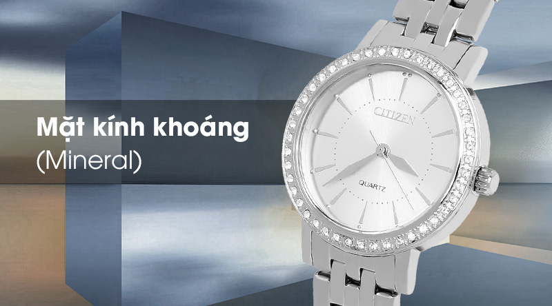 Đồng hồ nữ Citizen EL3040-80A được trang bị mặt kính khoáng chịu lực tốt