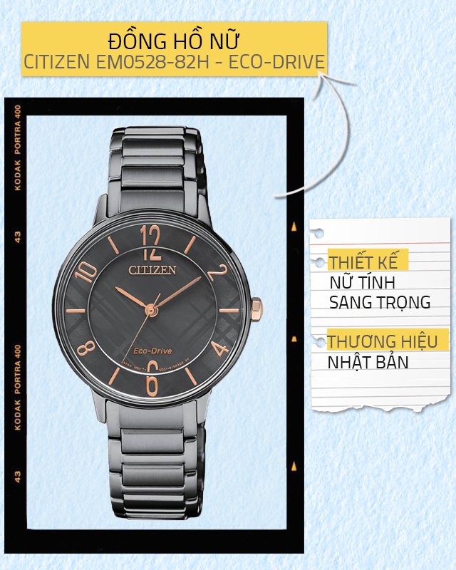 Đồng hồ nữ Citizen EM0528-82H - Eco-Drive mang thương hiệu Citizen nổi tiếng của Nhật Bản.