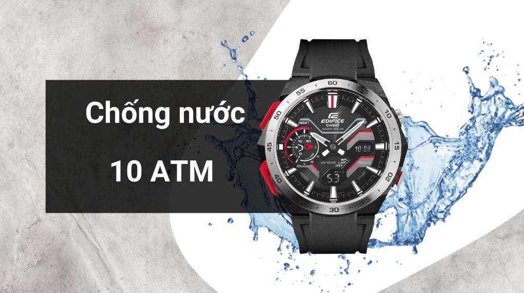 • Khả năng chống nước của chiếc đồng hồ EDIFICE CASIO này lên đến 10 ATM vì thế bạn có thể yên tâm sử dụng trong các hoạt động hằng ngày như: đi rửa tay, đi mưa, đi tắm hoặc thậm chí là đi bơi. Lưu ý: không nên đeo khi đi lặn hoặc vặn bấm các nút trong quá trình sử dụng dưới nước.