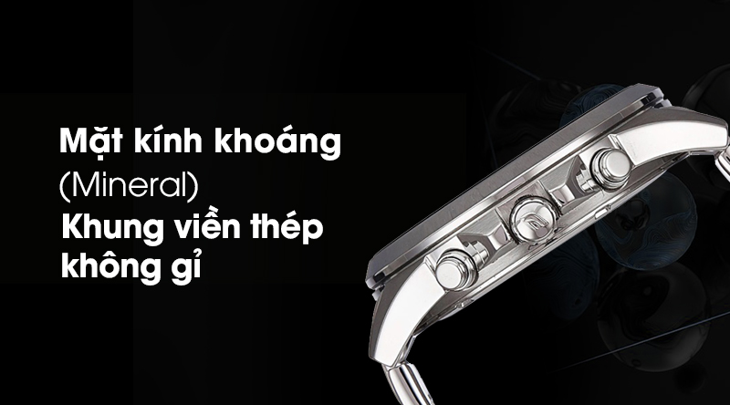 - Mặt kính có độ cứng khá, chịu lực tốt, không lóa mắt khi xem giờ dưới nắng.