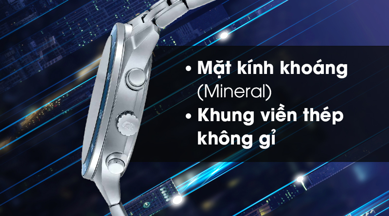 Mẫu đồng hồ nam Edifice Casio nam có khung viền bền bỉ, chống oxi hoá tốt, bảo vệ các thiết bị bên trong.