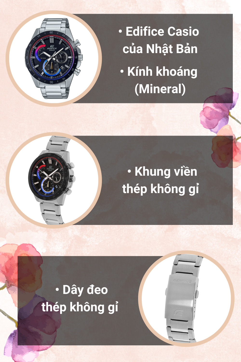 - Edifice Casio là một dòng của đồng hồ Casio, gây ấn tượng bởi thiết kế trẻ trung, hiện đại pha chút lịch lãm, cổ điển giúp đồng hồ trở nên sang trọng, được giới doanh nhân đặc biệt ưa chuộng.