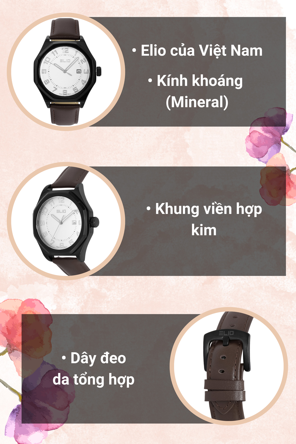 - Đồng hồ Elio với kiểu dáng, mẫu mã năng động, trẻ trung phù hợp với mọi lứa tuổi, đồng thời đồng hồ Elio còn mang vẻ đẹp sang trọng, lịch lãm. Đặc biệt đồng hồ Elio còn sử dụng bộ máy của Nhật Bản với chất lượng và độ bền cao.