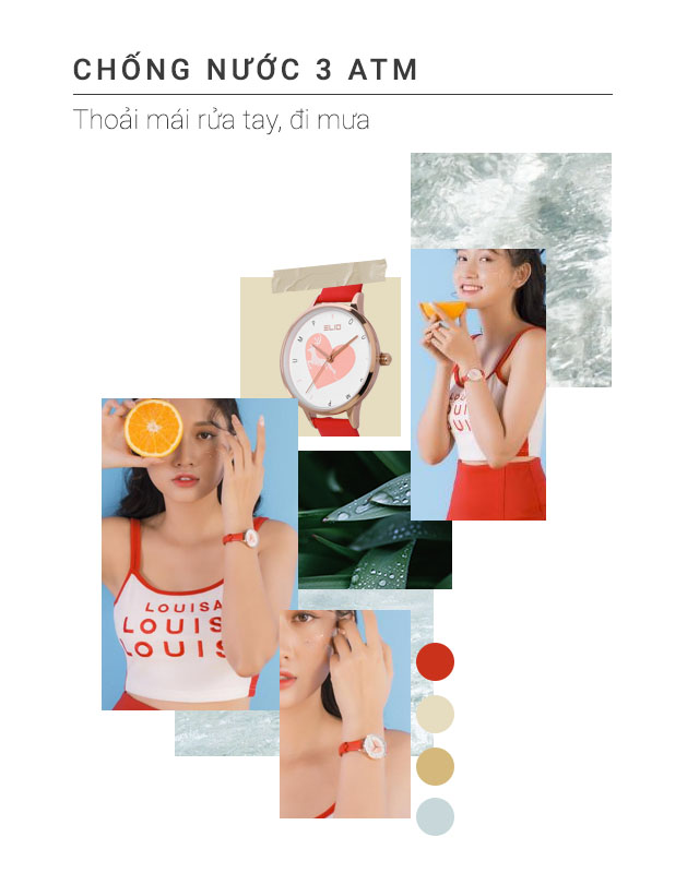 - Yên tâm đeo đồng hồ khi đi mưa nhỏ, rửa tay nhờ chỉ số chống nước 3 ATM, không mang khi tắm, bơi, lặn