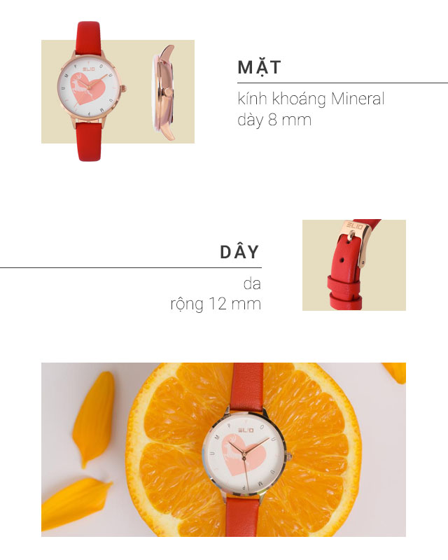 - Đồng hồ nữ này có đường kính mặt 32 mm, độ rộng dây 12 mm