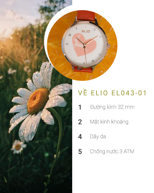 - Đồng hồ ELIO EL043-01 có phần dây đeo được làm bằng da êm ái, khung viền hợp kim sáng bóng, cứng cáp